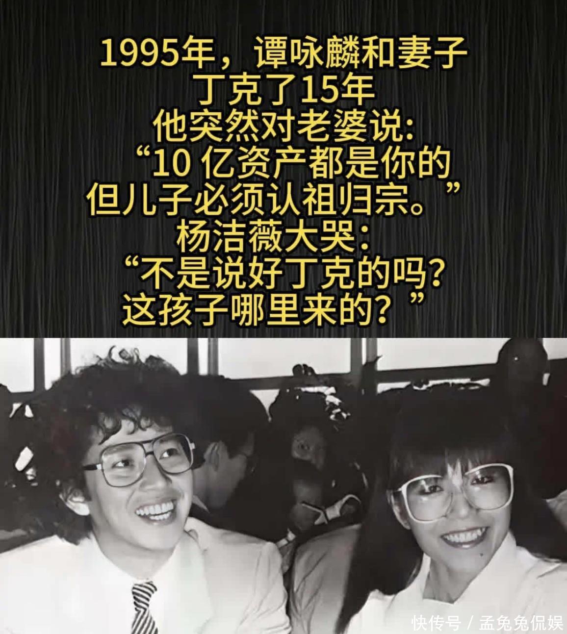 谭咏麟作为著名的音乐人,有着无数传唱度非常高的音乐作品,在感情方面有一个相伴十几年的妻子,夫妻俩婚姻初期签订了丁克协议,夫妻俩享受二人世界,但是谭咏麟却在1996年和朱咏婷育有一个儿子,并且在2006年才得以承认儿子的存在。